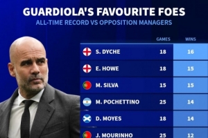 首胜斯洛特!德转列瓜帅对阵教练胜场榜:12次胜穆帅、11次胜渣叔