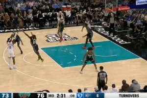 奋力反击!阿杰伊·米切尔追身三分命中 雷霆轰12-2追到只差4分