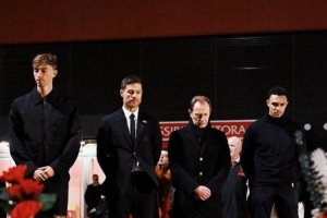 致敬若塔,阿隆索、赫伊森、阿诺德一行前往安菲尔德纪念碑前献花