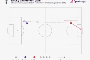 奔袭!范德芬带球67.7米后破门,创造2015年有统计以来欧冠纪录