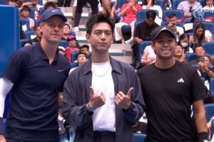 体育资讯10月1日讯 中网男单决赛,辛纳对阵勒纳-钱,李现担任现场挑边嘉宾为选手们挑边。