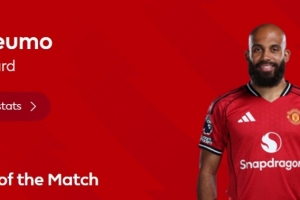 率先破门!英超官方:姆伯莫当选曼联2-2热刺球迷票选全场最佳