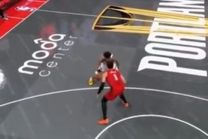 踩着logo出手!卡斯尔接巴恩斯传球超远三分飚中