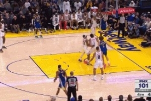 卖力防守!库里紧贴古德温造成对手掩护犯规