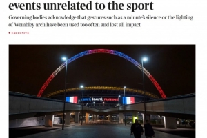 泰晤士报:英格兰足球管理机构决定不再为与足球无关事件默哀