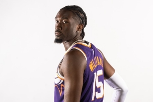 此役,太阳中锋马克·威廉姆斯出战28分钟,8中4得到13分10板2抢断。