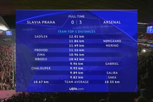 阿森纳球员本场跑动距离榜:诺尔高11.86km最多,梅里诺次席