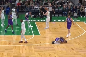 有点危险!布朗扑防后手撩阴小基昂特 裁判给普通犯规后者3罚全中