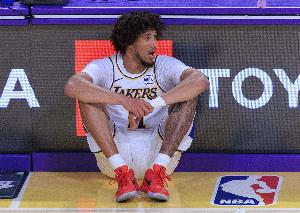 东契奇和海斯击掌庆祝!湖人晒赢球海报:今晚洛杉矶很吵