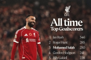 利物浦队史射手榜:伊恩-拉什346球居首,萨拉赫250球第三