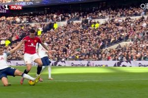 热刺1-1扳平曼联!芒特传球被断,特尔背身单打德里赫特破门