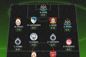 WhoScored本周欧冠最佳阵:奥斯梅恩、梅里诺、福登、丹-伯恩在列