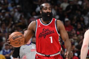 裁判没表示!哈登被狄龙顶到腹部 双方爆发口角被拉开!