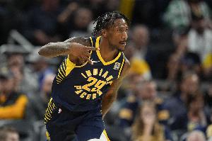 聊了点啥?库里赛后和哈利伯顿拥抱寒暄 后者喜笑颜开